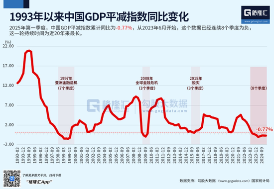 一个经济体的支出来自于两部分,货币和信用,信贷是经济中最重要的组成部分,获得信贷,增加支出,驱动经济上行。信贷需求大幅降低,消费不振,结果就是经济通缩。我们的GDP平减指数已经连续8个季度为负,这是该项数据有统计以来最长时期的连续负增长。