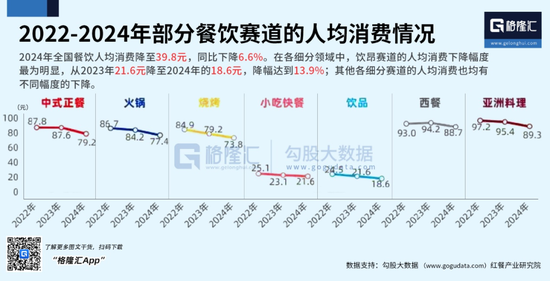 从人均消费数据来看,数据更是糟心。2022-2024年,中国餐饮人均消费值持续下滑。大家看看下面我们的数据图一。数据显示,2024年,全国餐饮人均消费已降至39.8元,这是有这个统计数据以来的历史最低值。